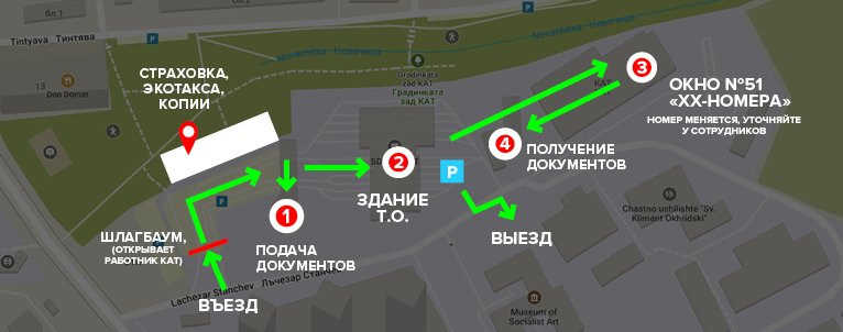 - You need to register your car at the regional office of the State Traffic Inspectorate (in Bulgarian KAT or “Patna Police”) in accordance with your residential address indicated on the residence permit card.