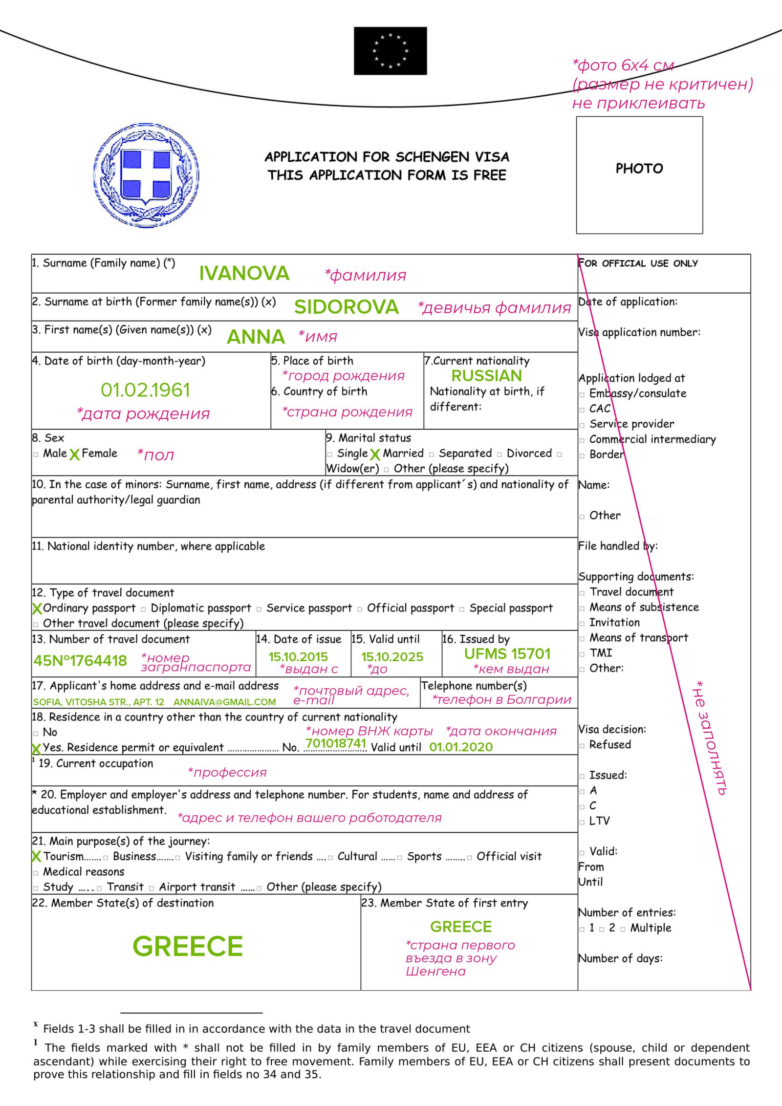 Visa documents are accepted in Sofia. Registration is made by telephone. Embassy staff speak Greek, Bulgarian and English. If you have difficulties with languages, then the standard phrase “Hello, I would like to book an appointment” will help you. In response, they will tell you the next available date and time for your visit, and you will dictate your last name. Bookings are usually made 2-3 weeks in advance. Next, you will need to collect a list of required papers and fill out a form.