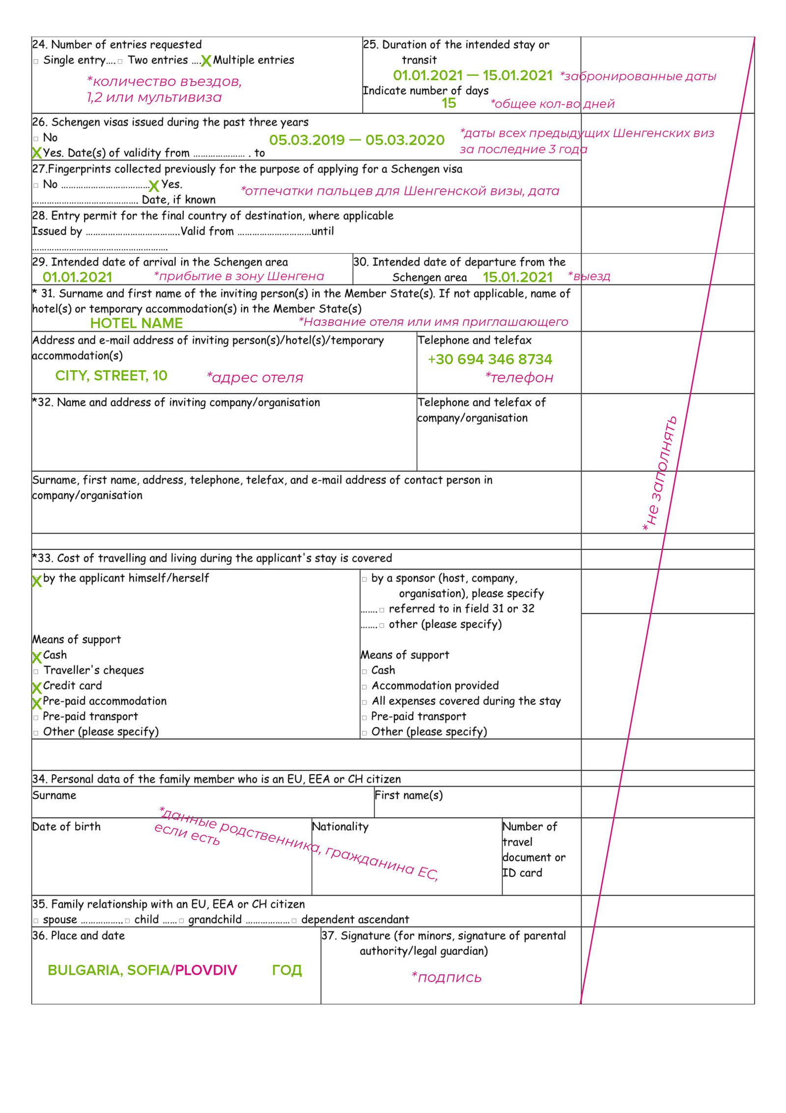 Sample of filling out the form