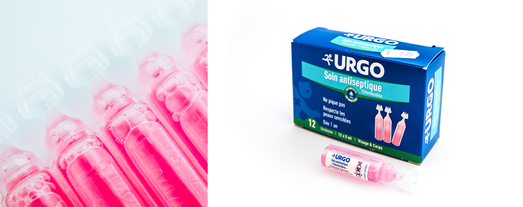 One of the variants of Chlorhexidine in its pure form (in Bulgarian ChlorHexidine) is the drug URGO, produced in France. Packaged in 12 plastic ampoules of 5 ml. The drug is colored pink, and therefore there is a possibility of confusing it with Miramistin. But since miramistin and chlorhexidine are very close analogues, there is no danger in this. The company also produces the drug in the form of a spray.