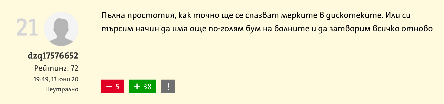 “How can you observe anti-epidemic measures at discos?! This is completely absurd. Or are we looking for a way to increase the number of patients in order to close everything again?“It seems that the owners of entertainment establishments paid for this decree.”