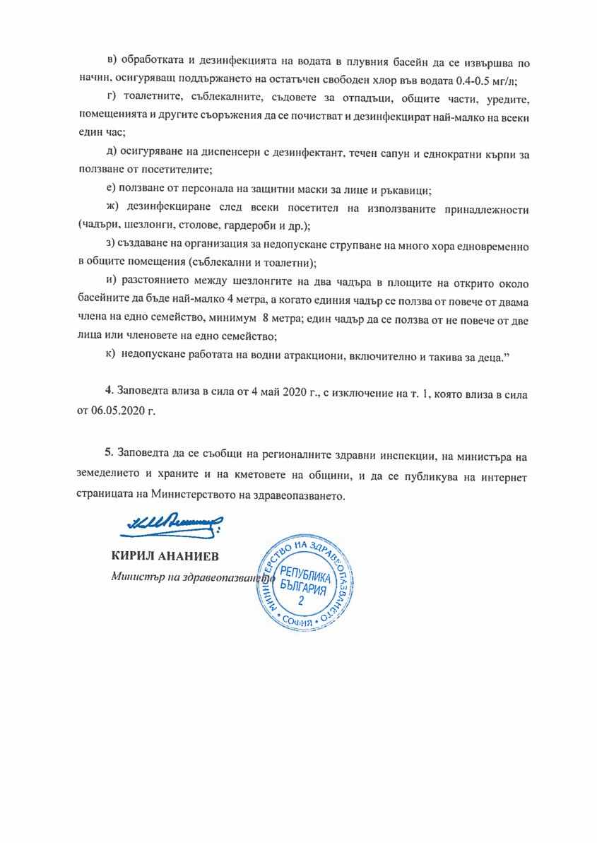 According to the order of the minister, the Bulgarian Agency for Food Safety (Bulgarian Agency for Storage Safety) must determine additional requirements for the organization of work by May 5.