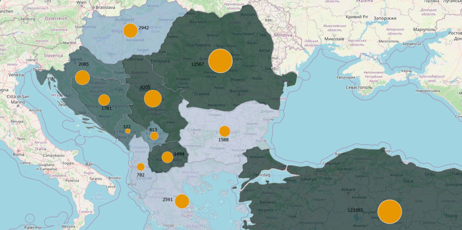 Infection data for countries bordering Bulgaria. Data: Johns Hopkins University