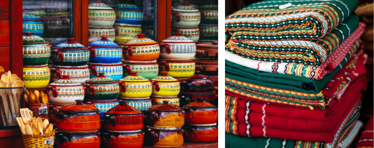 - Handmade. Bulgarian ceramics, tablecloths, fabric napkins, kitchenware, wool socks and all kinds of local handmade.