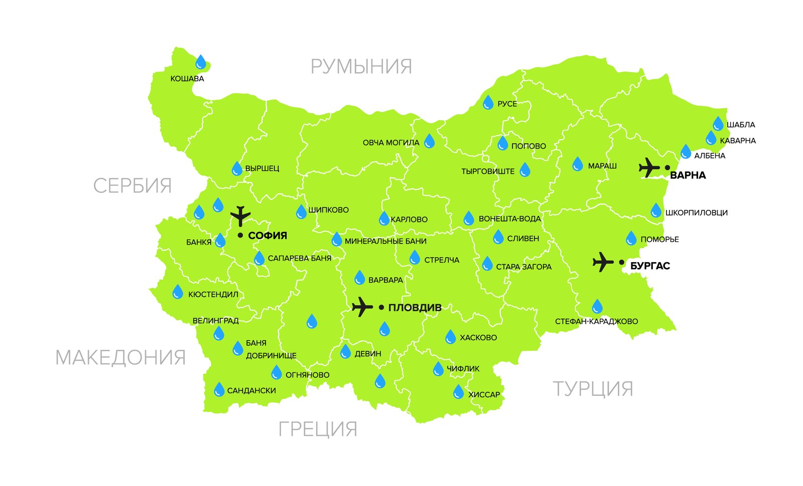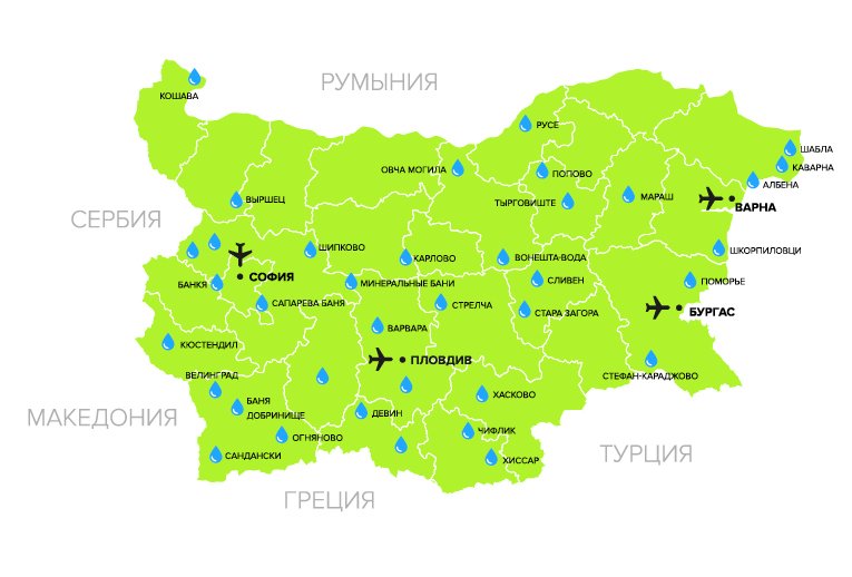 It is important to understand that SPA tourism is still developing in Bulgaria, so municipal swimming pools are not always in satisfactory condition. Of course, in some cities there are 4 and even 5 star hotels based on SPA procedures, but they can be counted on one hand. Therefore, if your main goal is treatment and visiting SPA procedures, carefully study the photos and information on the hotel, since most resorts may not meet your expectations in terms of design and level of service. However, a nice feature of visiting mineral springs in Bulgaria is the low prices. Along with this, fresh air filled with the aroma of forests and flowering fields will create an ideal environment for obtaining excellent treatment results.