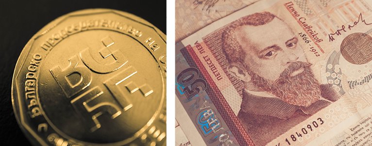 Таким образом, стоимость одного евро равняется 1,95583 лева. 100 скотинок стотинок составляет один лев. Как и в любой другой стране в обороте находятся металлические монеты (1, 2, 5, 10, 20 и 50 стотинок) и бумажные банкноты (1, 2, 5, 10, 20, 50, 100 левов).