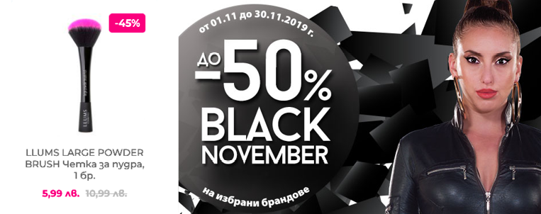 - Магазин косметики и бытовой химии Lilly предлагает скидку до 50% в течении целого месяца. Лицом акции «Чёрный ноябрь» выступила болгарская спортсменка Катрин Тасева. Подробнее